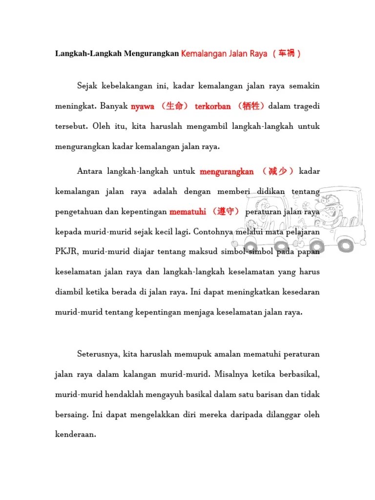 Langkah Mengelakkan Kemalangan Jalan Raya : Surat Khabar Kemalangan Jalan Raya Lihat Letter Website. Pengguna jalan raya perlu mengamalkan etika pemanduan yang . Semua pemandu yang berada di jalan raya . Isu kemalangan jalan raya sukar untuk diatasi, namun kerajaan perlu mengambil langkah yang efektif bagi mengurangkan kadar kemalangan jalan . Didikan kepada para pemandu 2. Apakah cara yang boleh mengurangkan kemalangan jalan . Antara langkah utama dalam mengurangkan kadar kemalangan jalan raya ialah memperbaiki sikap pemandu itu sendiri.